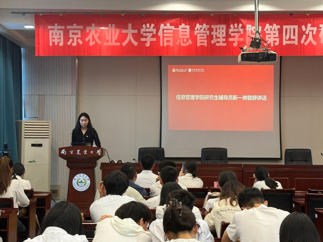 院辅导员靳一琳向学院第四次研究生代表大会的顺利召开表示热烈祝贺。讲话中,她指出学院老师始终秉持“以人为本”的教育理念,关心每一位同学的成长和发展,为各位提供全方位的支持和帮助。同时对学院第四届研究生会的工作和成绩表示肯定,并对新一届主席团的产生表示祝贺与期待。