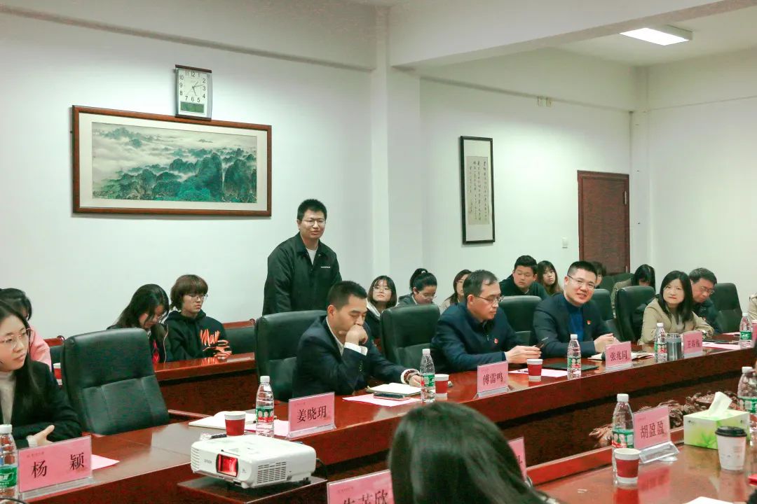 张兆同详细介绍了学校、学院的情况和人才培养情况,常戌一阐述了五公司的发展情况、战略规划、污污漫、人才培养等方面,王春伟介绍了学生就业和学生党建情况,申文涛对江苏分公司发展态势做了阐述,胡盈盈介绍了人才培养体系、青年员工培养等方面。