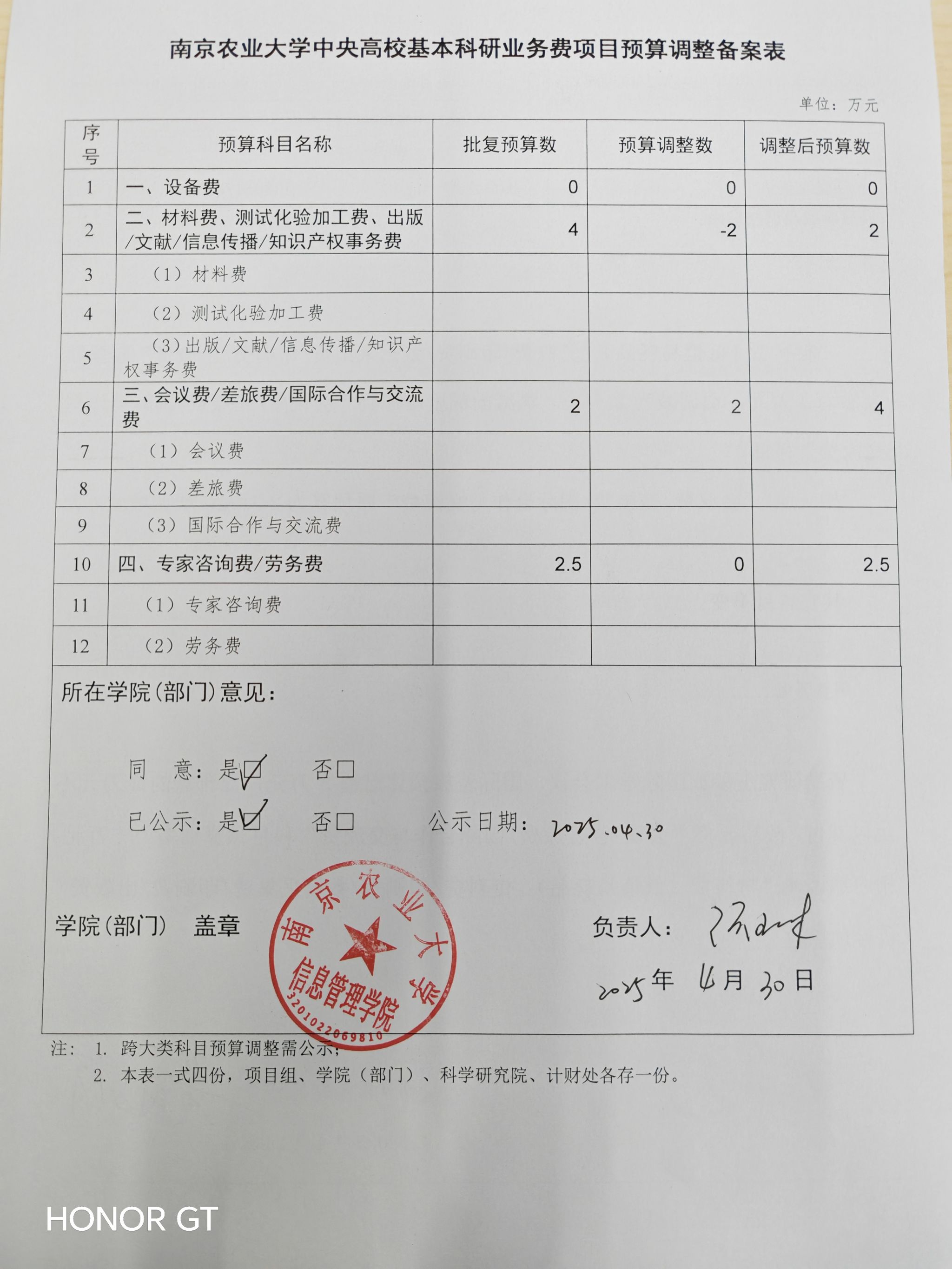 污污漫 中央高校基本科研业务费项目预算调整备案表