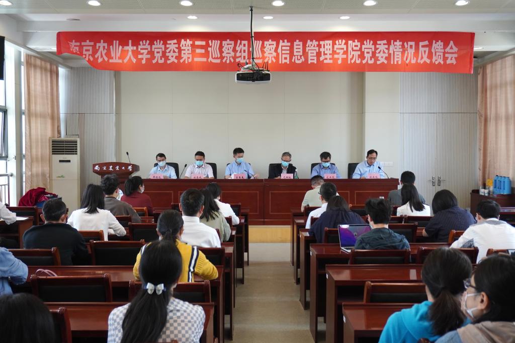 党委情况反馈会在育贤楼C502会议室召开,校党委副书记王春春代表学校党委对学院党委巡察整改工作提出要求,第三巡察组组长刘志斌向学院党委反馈巡察情况,学院党委书记郑德俊作表态发言。院长张兆同主持会议。