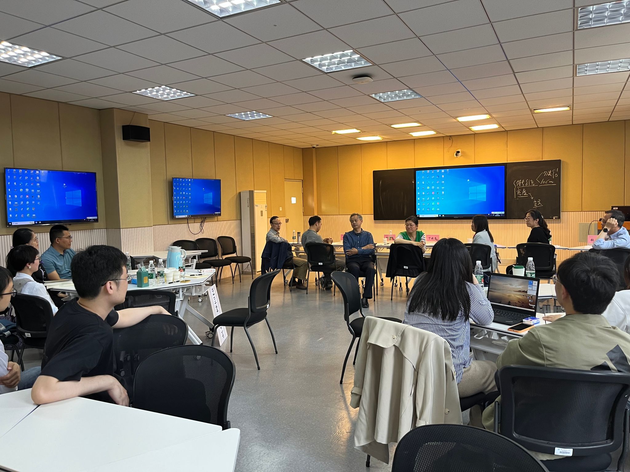 赛后,评委专家与青年教师们进行了交流。鲁植雄强调青年教师要加强课堂教学过程中与学生互动,完善授课PPT的内容,增强PPT的生动性和吸引力,可从“工本位”角度出发将课程与学生实践应用相结合,从而吸引学生关注课堂内容。刘宇婧结合自己教学比赛参赛经验,用“道、学、技、艺、仁”五个字分享了如何用选取的一个教学节段来吸引评委。鲍永美从青年到中年教师过程中,感悟到不能一味向学生灌输知识,重点是通过互动等手段了解学生的接受能力和接受度,与时俱进,不断积累经验。