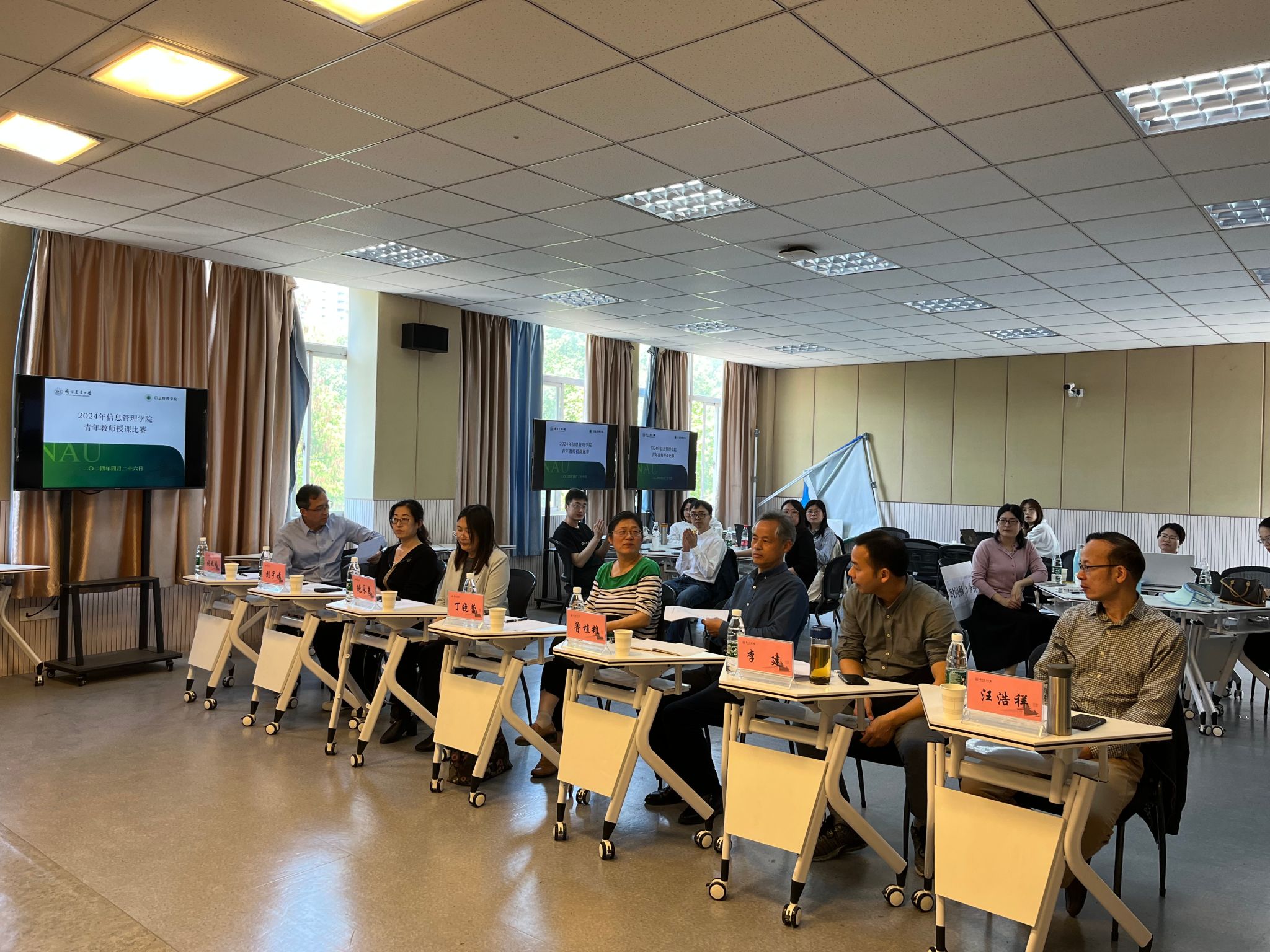 4月26日在汇贤楼B404组织了2024年青年教师教学竞赛。学院邀请了教务处副处长丁晓蕾,工学院教授鲁植雄,农学院教授鲍永美,生科院副教授刘宇婧,学院教学指导会委员李建和汪浩祥等6人担任评委,学院院长张兆同主持本次竞赛。