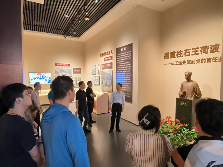 在场馆展示区,党员们参观了“两浦星火革命洪流”“疾风劲草北岸屹立”“品重柱石王荷波”等单元内容,重温了南京早期党组织的峥嵘岁月,感受了先烈们为实现共产主义理想献身革命的光辉事迹,学习了中国工人运动先驱、中国共产党早期领导人、中央监察委员会首任主席王荷波的丰功伟绩。王荷波同志是中国共产党的忠诚战士,他的一生是革命的一生、奉献的一生。纪念馆以王荷波革命斗争伟业为主线,通过大量珍贵的史料、图片和文物,采用场景复原、情景剧等手段,展现王荷波追求真理,英勇斗争,清正廉洁,舍身革命的事迹。参观活动为党员们上了一堂生动的党性修养课、红色文化课、廉洁教育课。