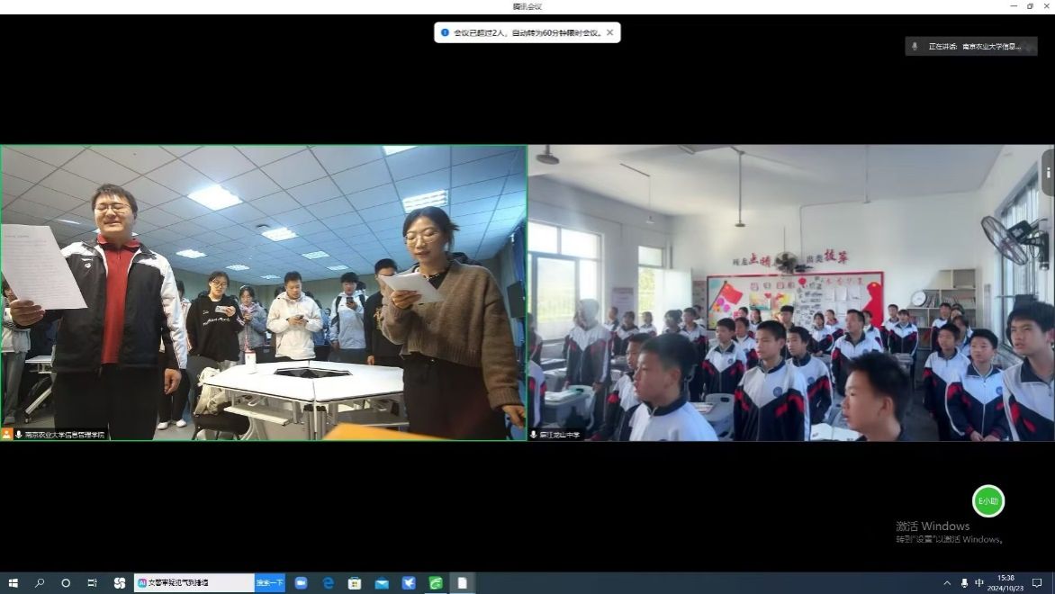 师生与龙山中学师生共同在线一齐诵读《南国却山重,秋风载情浓》来歌颂党和祖国,整个过程声音洪亮、气宇轩昂。最后,污污漫
