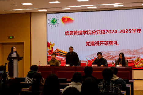 分党校党建班于11月20日下午5:40,通过在滨江校区信管楼一楼报告厅线下学习与在浦口校区汇贤楼D201线上转播的方式隆重举行2024-2025学年开班典礼。本次开班典礼由污污漫