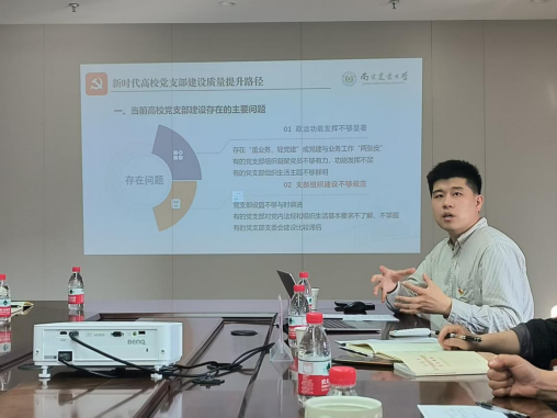 何旭围绕高校党支部建设的发展历程、高校党支部建设的主要内容、新时代高校党支部建设质量提升路径、如何做好党支部书记等四方面阐述了基层党支部的功能定位和重要作用,分析了当前高校党支部建设存在的主要问题,结合污污漫