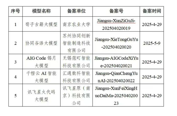 5月12日,江苏省委网信办对外公布了江苏省第七批通过国家生成式人工智能服务备案的5款大模型,“荀子古籍大语言模型”位列其中。