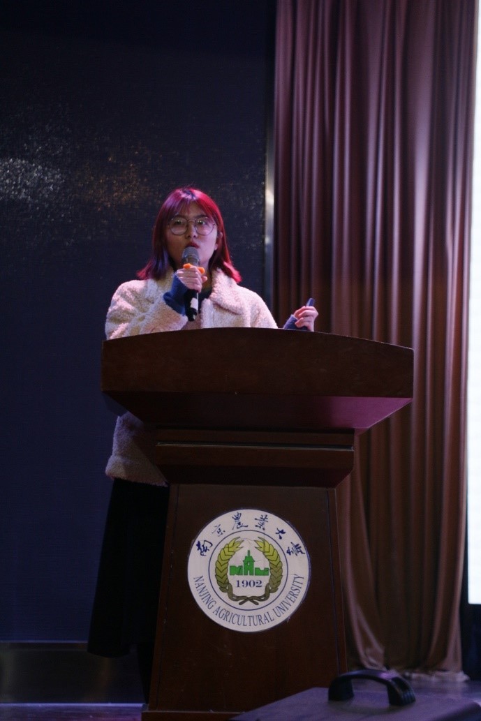 最后,优秀学风班级代表何珊同学向大家分享他们班级的故事,优秀的班级离不开班级内的每一位同学。在班级管理方面,有多个群处理不同事务;在学习方面,学委组织大家上传和分享学习资料;在日常生活方面,鼓励大家投身运动,增强体魄。