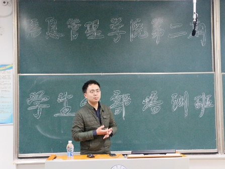 姚敏磊从学生干部的自我定位、学生活动资源利用以及活动宣传总结等方面讲解了如何举办一场形式新颖、高效品质的学生活动,多次结合自己的亲身经历和真实感受为学员们现身说法、耐心讲解。