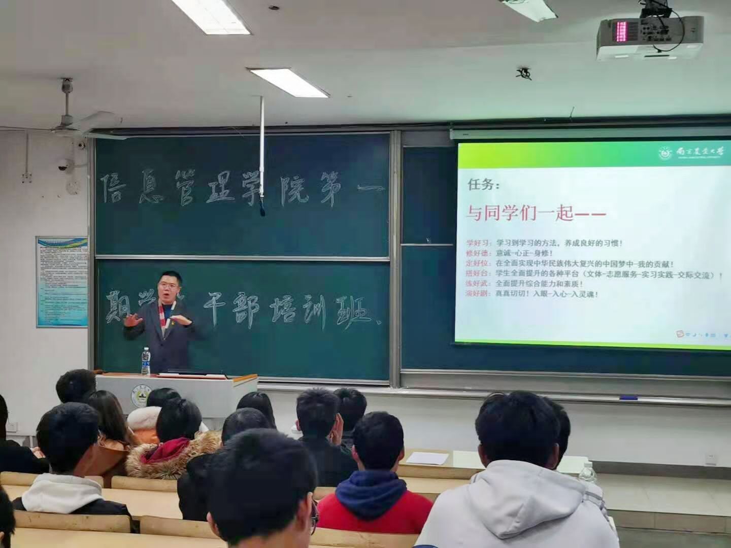 学生干部培训和发展的总体规划;随后由党委副书记王春伟做开班第一讲:《做一名有故事的学生干部》。
