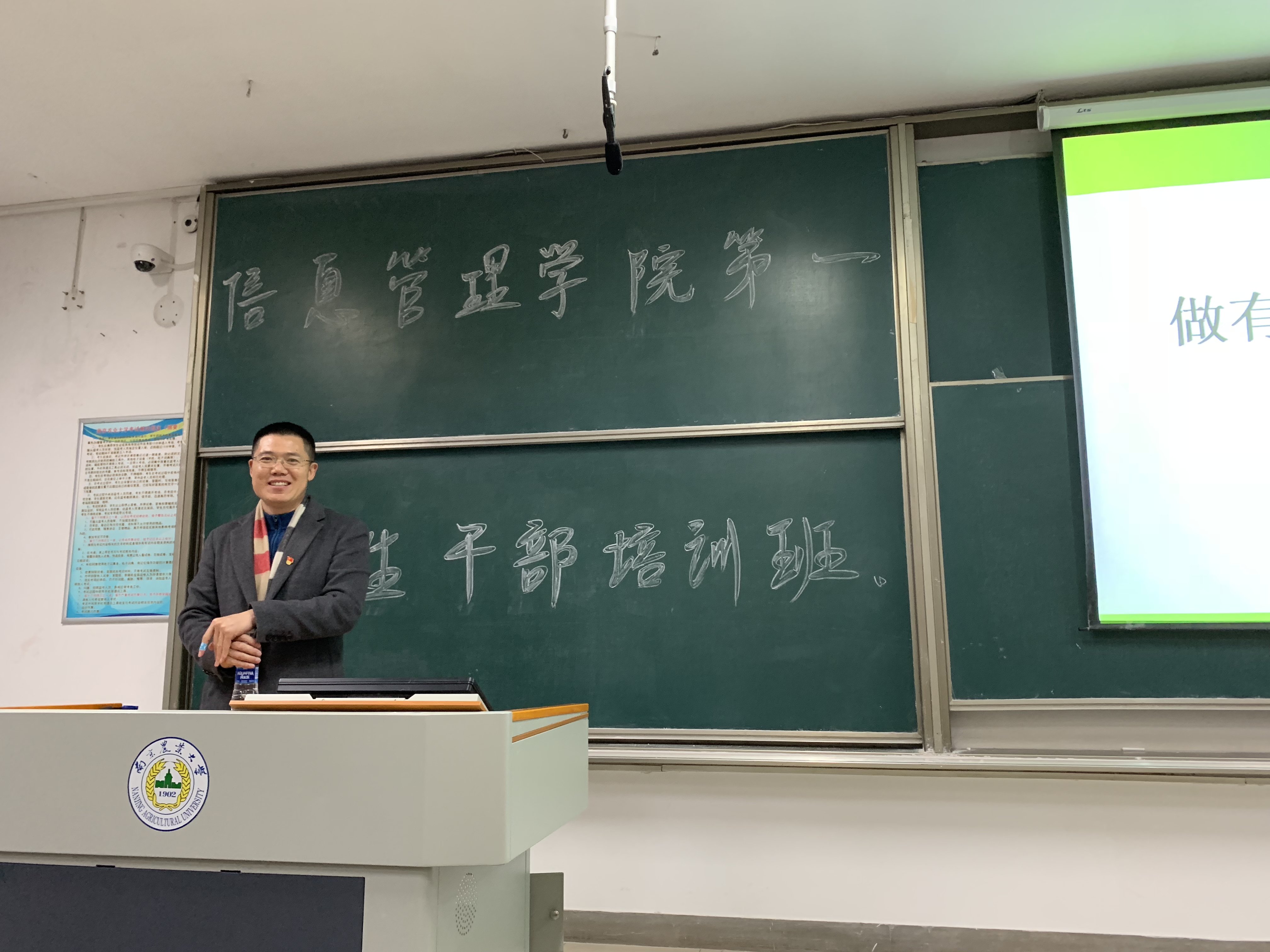 王春伟老师从“释学生干部”、“悟学生干部”、“做学生干部”三个方面出发,深入浅出地说明了学生干部的角色定位、学生干部的使命与任务、学生干部的能力和素质。分享自己作为学生干部的故事,幽默却又不失激情地向同学们阐释了如何成为一名合格的学生干部,最终培训在阵阵掌声中结束。