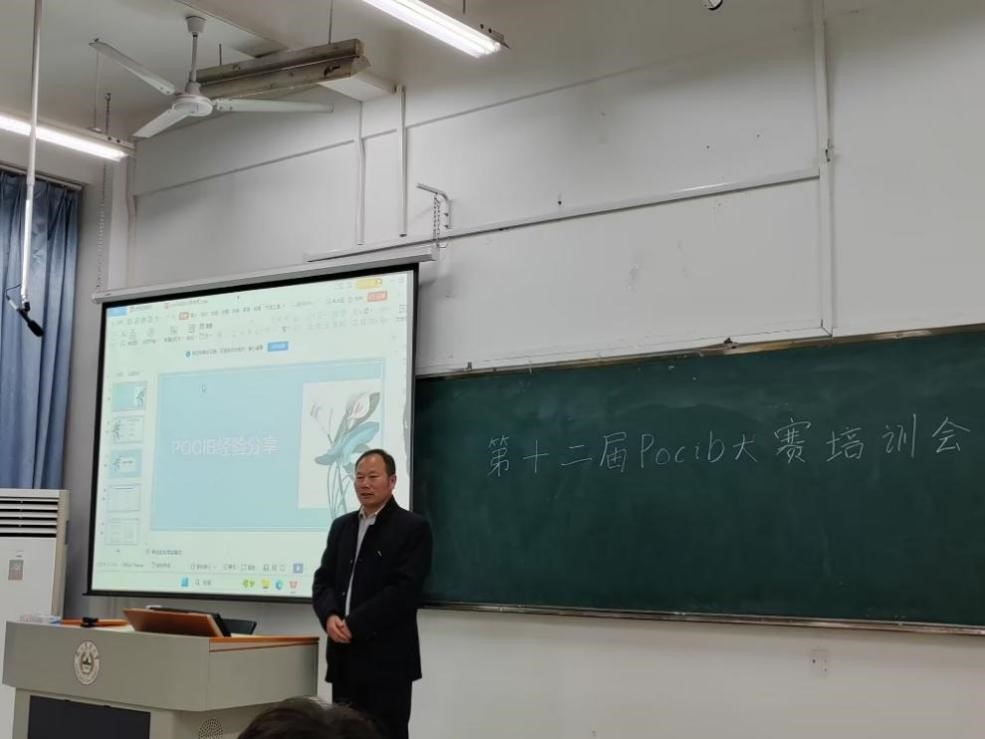 往年比赛状况及获奖情况,然后介绍了POCIB比赛的大致流程,并向同学们说明参加本比赛应了解的知识、具备的能力和所需做的准备工作。