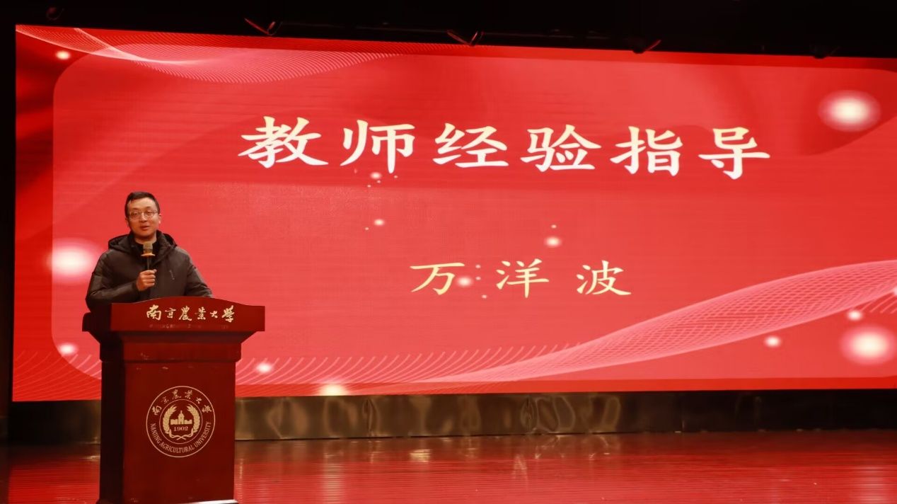 大会进行第四项表彰:公益服务优秀奖。万洋波老师为王雪、王颖等获奖代表颁发“公益服务优秀奖”。这些同学积极投身公益服务,是校志愿服务优秀组织与个人的获得者,他们用行动为社会传递温暖。随后,万洋波老师为在场同学进行公益服务经验指导,夏鑫楠同学分享了个人山区支教经验。