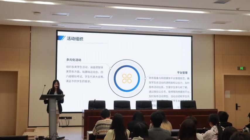 院学生会干事代表易涵熙则以“校园文化建设”与“未来合作展望”为主题,畅谈自己在学生会工作的心得体会,现场同学们互相思维碰撞,加深了情感。
