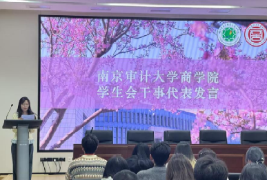 (南京审计大学商学院学生会干事代表储媛媛发言)